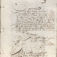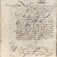 Privilegio de Nossa/ S[enho]ra de Guima[raes]- Diz João Pacheco P[erei]ra juiz/ na Alfandega da sidade do por/to […] p[ar]a requerimentos q[ue] tem/[...] necessário q[ue] o tabeliam ma/noel de barros lhe lhe [sic] passe para certidão huma conpra de humas/ casas e leiras q[ue] se acha lançado/ em suas notas Texto