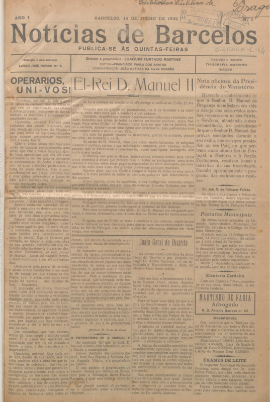 Fundado em Braga em 1878 e 1879, como semanário (...)