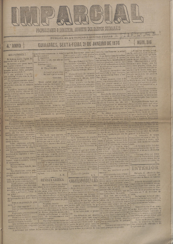 Bisemanal politico e noticioso. Principiou a sua publicação em 2-6-1872 e terá terminado em 1889. Mais informações