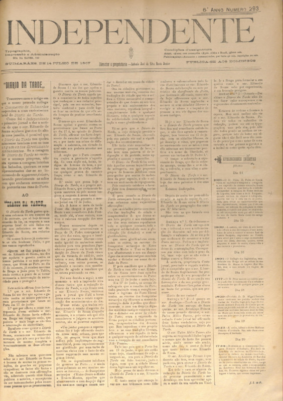 Independente, n.º 293, de 14/07/1907