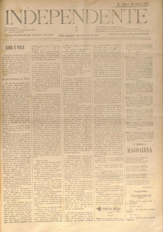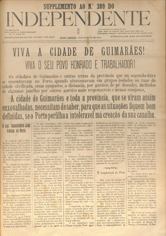 Independente, n.º suplemento ao n.º 289, de 20/06/1907
