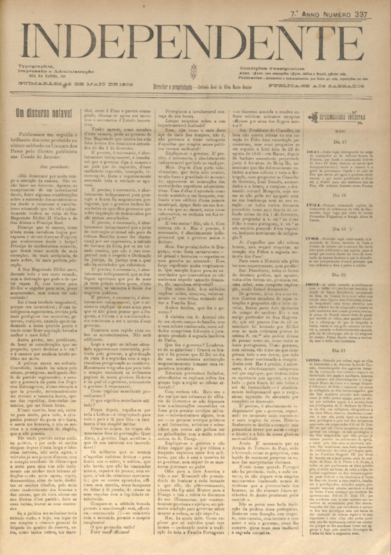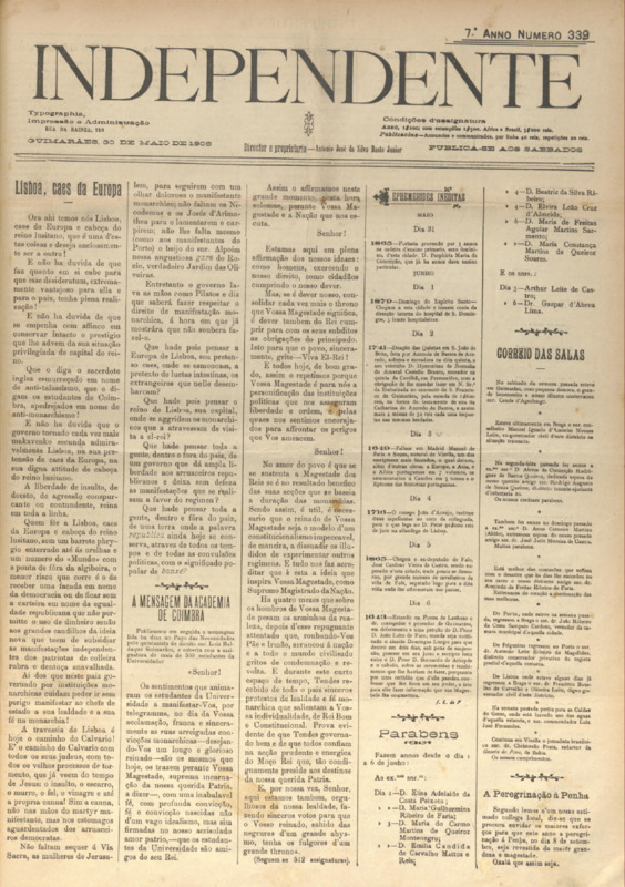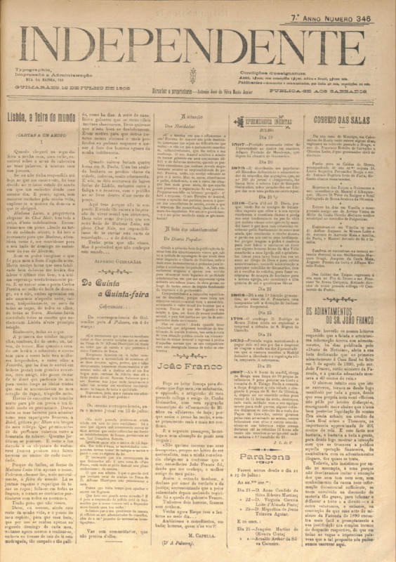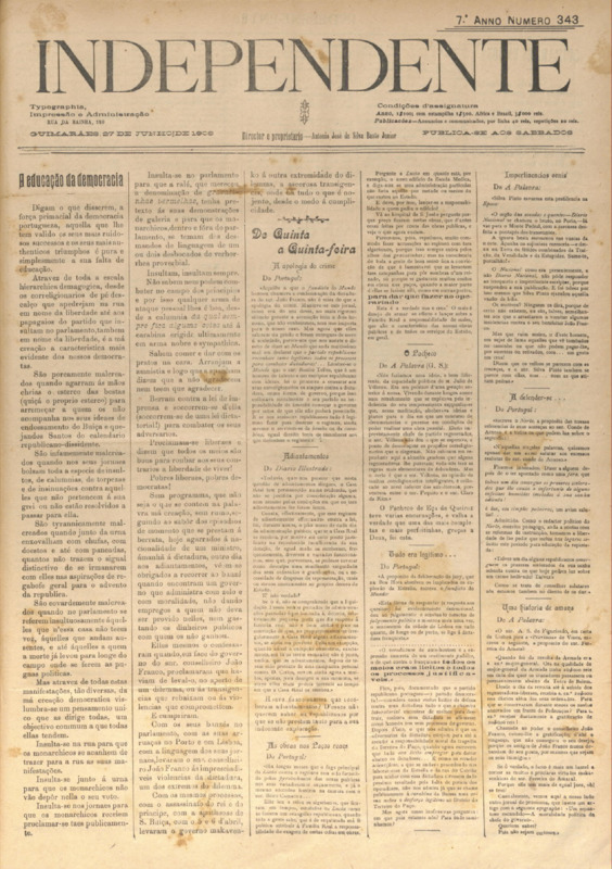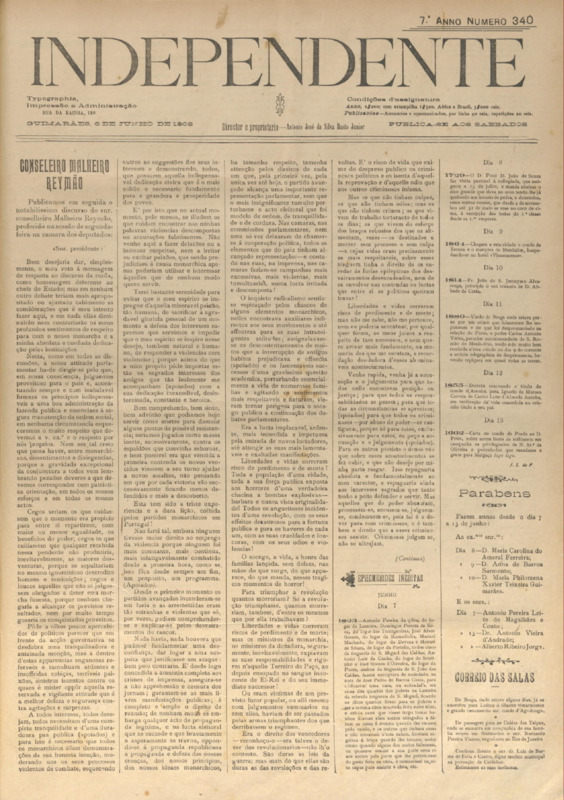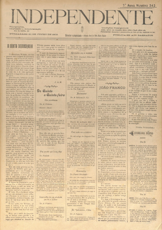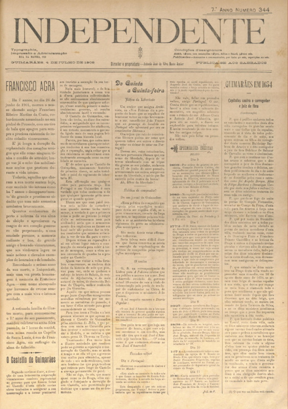 Publicação: aos domingos. Saiu o primeiro número em 03-11-1901. No n.º 282 do 6.º ano em diante figura como Director e Proprietário António José da Silva Basto Júnior; do n.º 333 do 7.º ano ao fim, passou a publicar-se aos sábados. Era jornal afecto ao partido franquista. Mais informações
