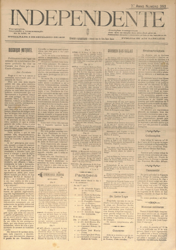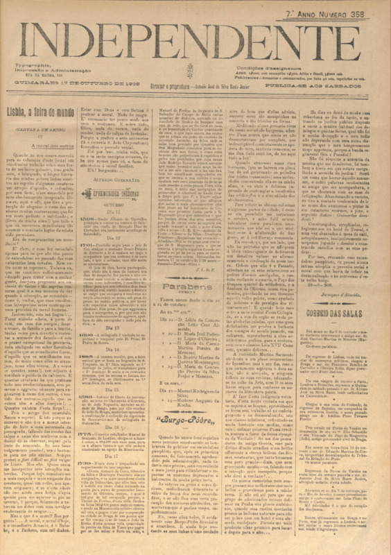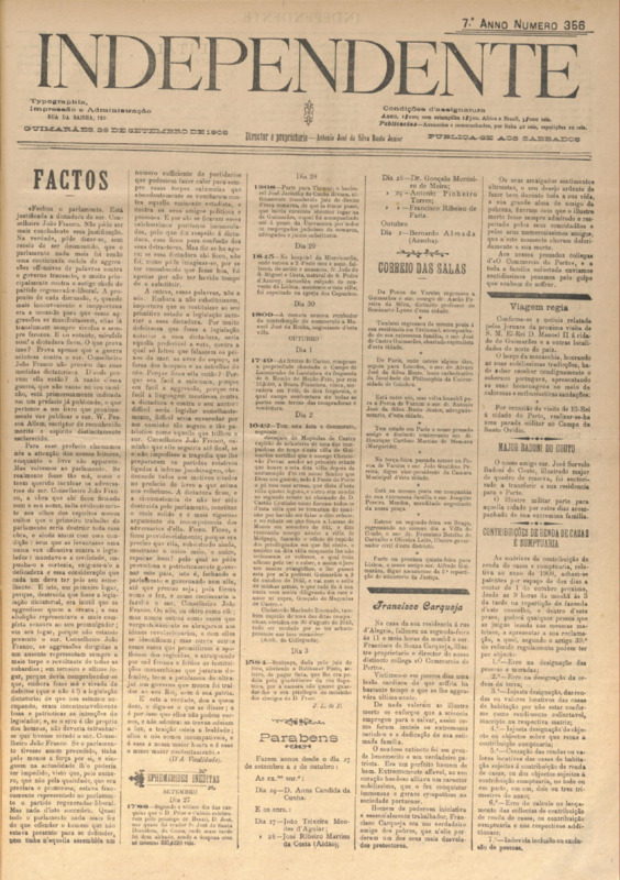 Publicação: aos domingos. Saiu o primeiro número em 03-11-1901. No n.º 282 do 6.º ano em diante figura como Director e Proprietário António José da Silva Basto Júnior; do n.º 333 do 7.º ano ao fim, passou a publicar-se aos sábados. Era jornal afecto ao partido franquista. Mais informações