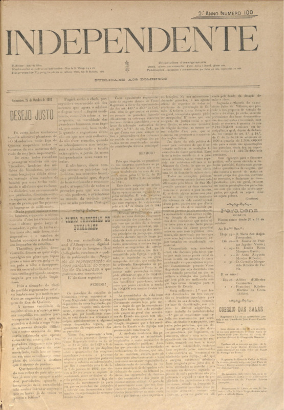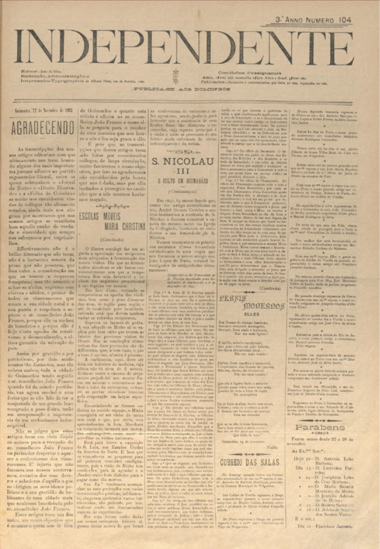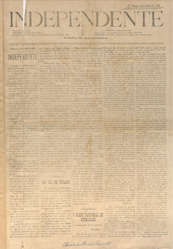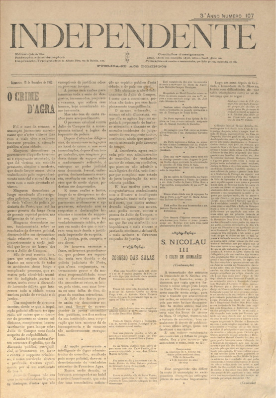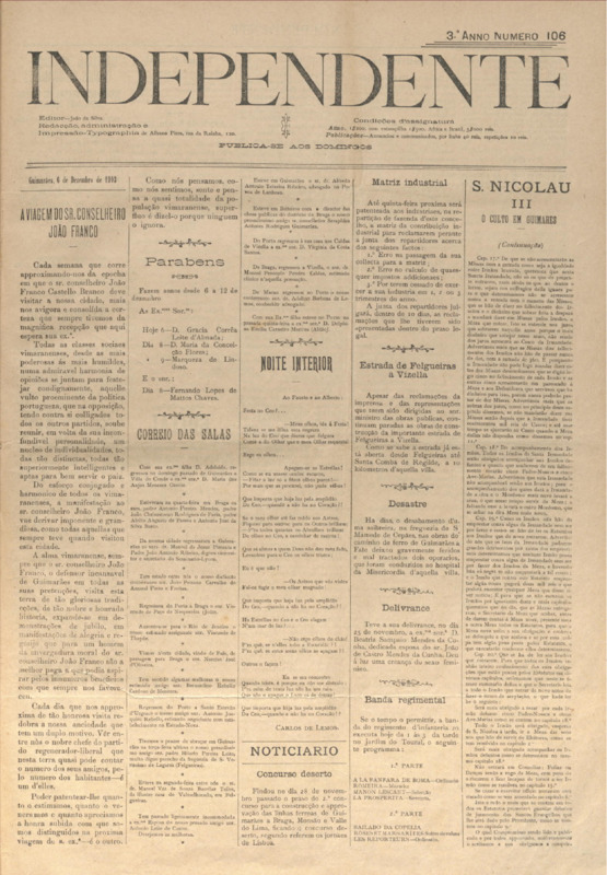Publicação: aos domingos. Saiu o primeiro número em 03-11-1901. No n.º 282 do 6.º ano em diante figura como Director e Proprietário António José da Silva Basto Júnior; do n.º 333 do 7.º ano ao fim, passou a publicar-se aos sábados. Era jornal afecto ao partido franquista. Mais informações