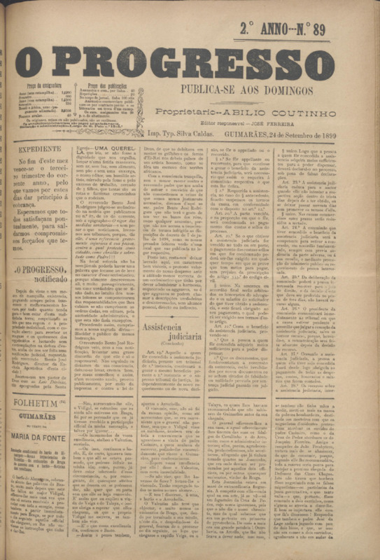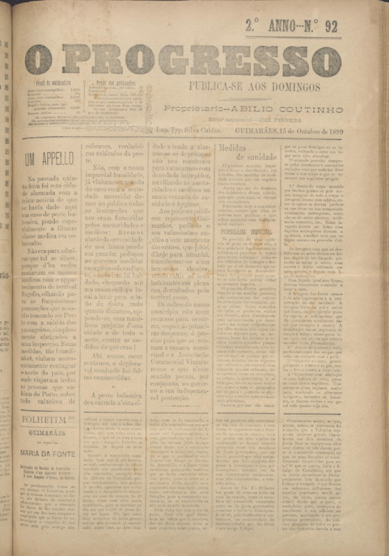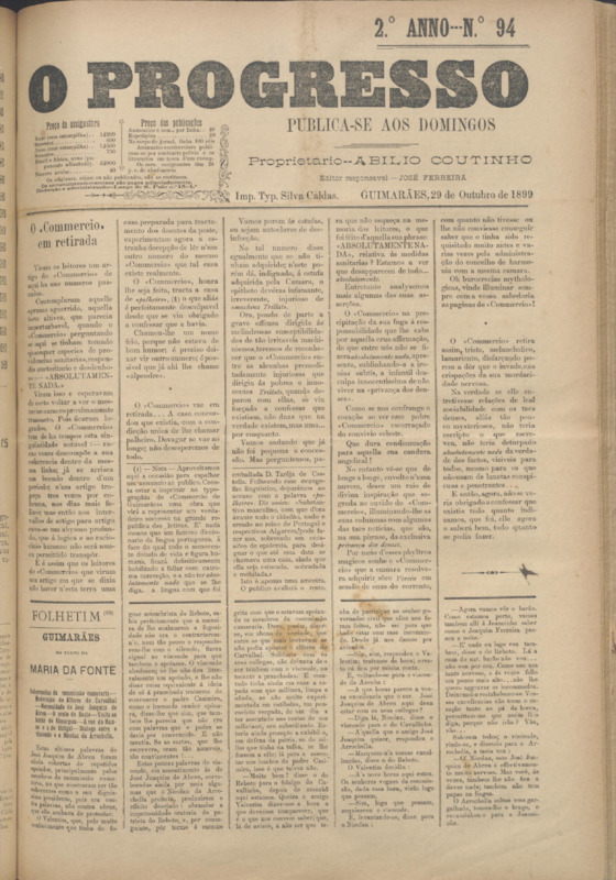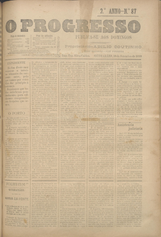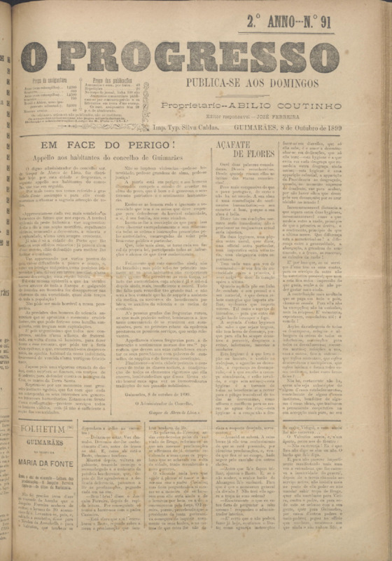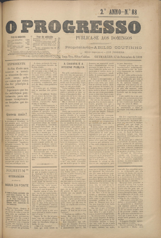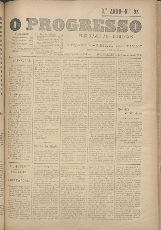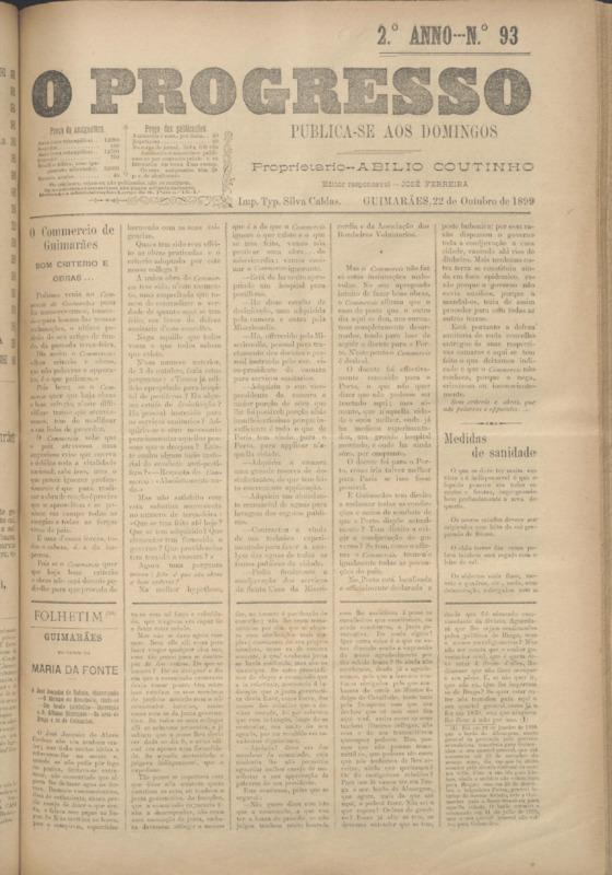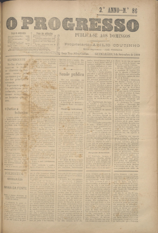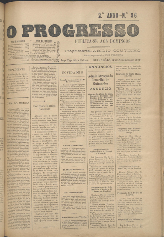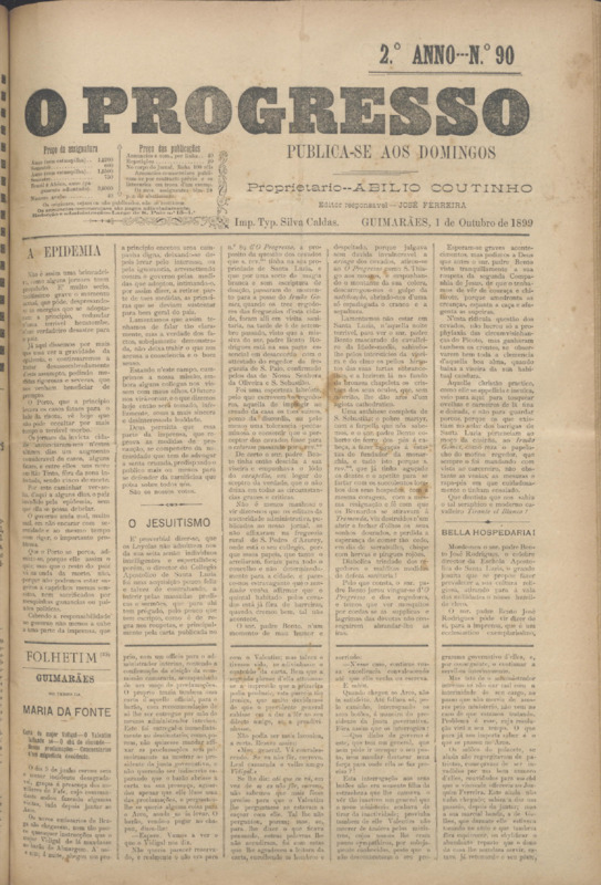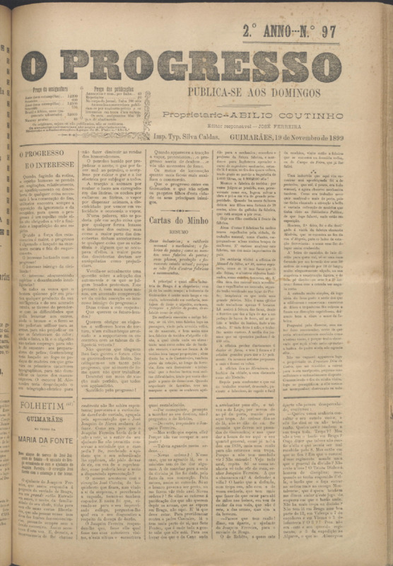 Publicação: aos domingos. Saiu o primeiro número em 01/01/1898 e findou com o n.º 301 do 6.º ano, em 08-11-1903. Sairam alguns suplementos. Foi Jornal afeto ao Partido Progressista. Mais informações