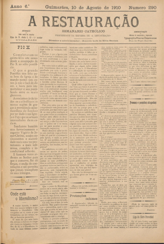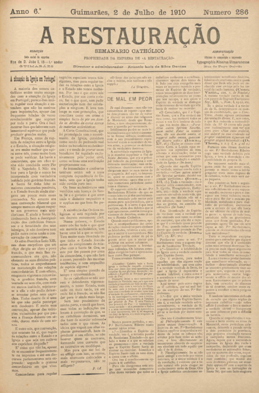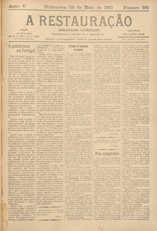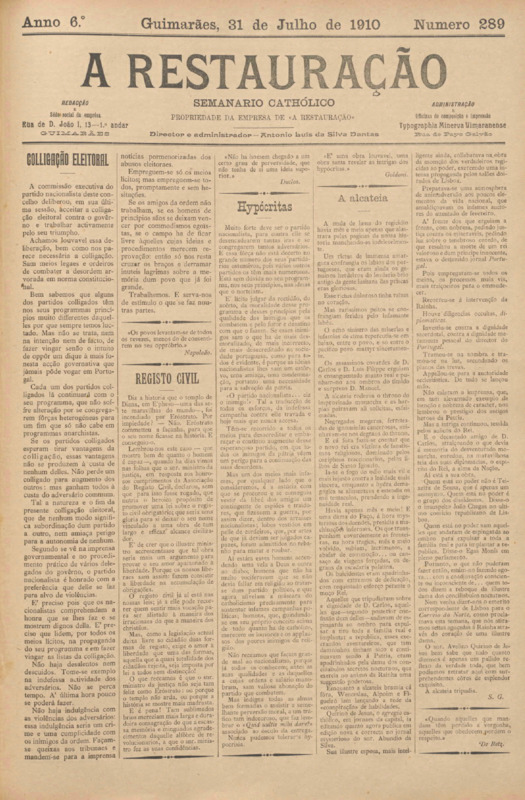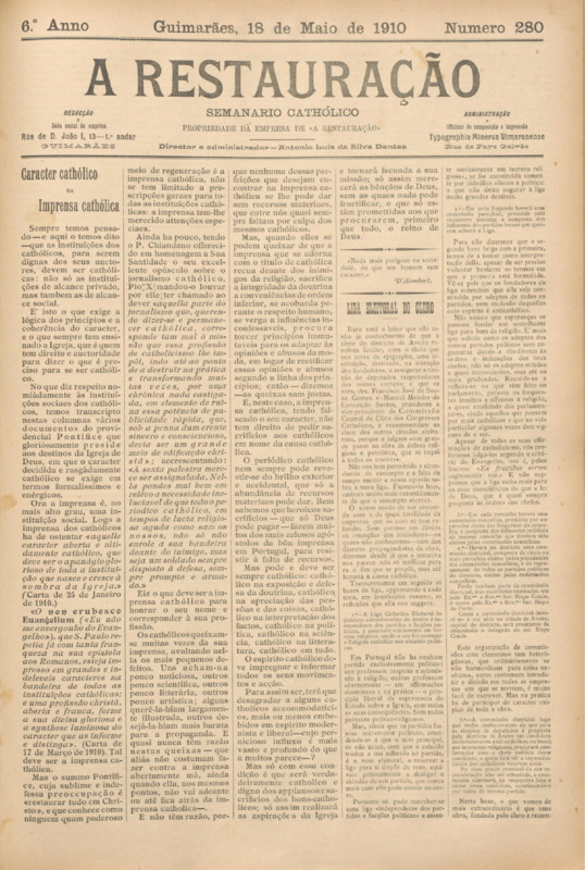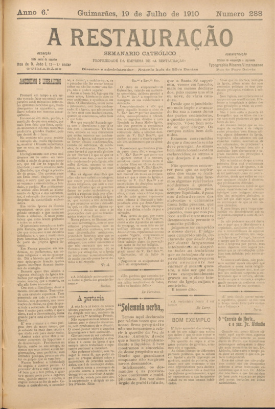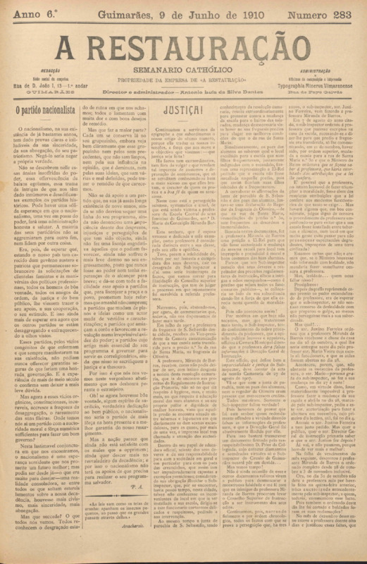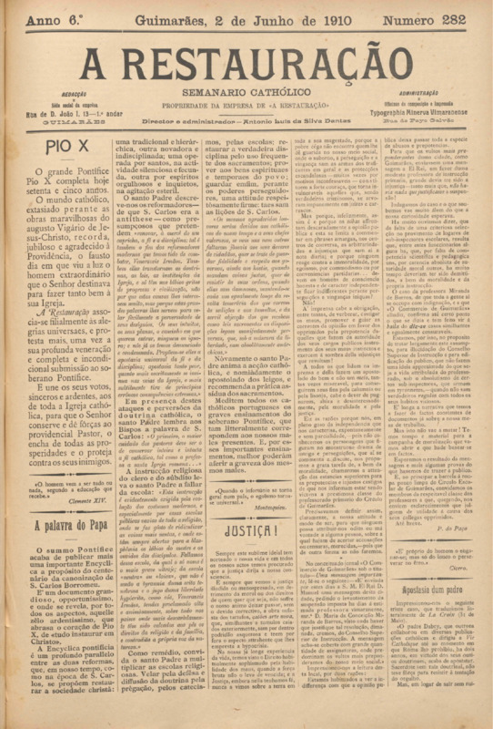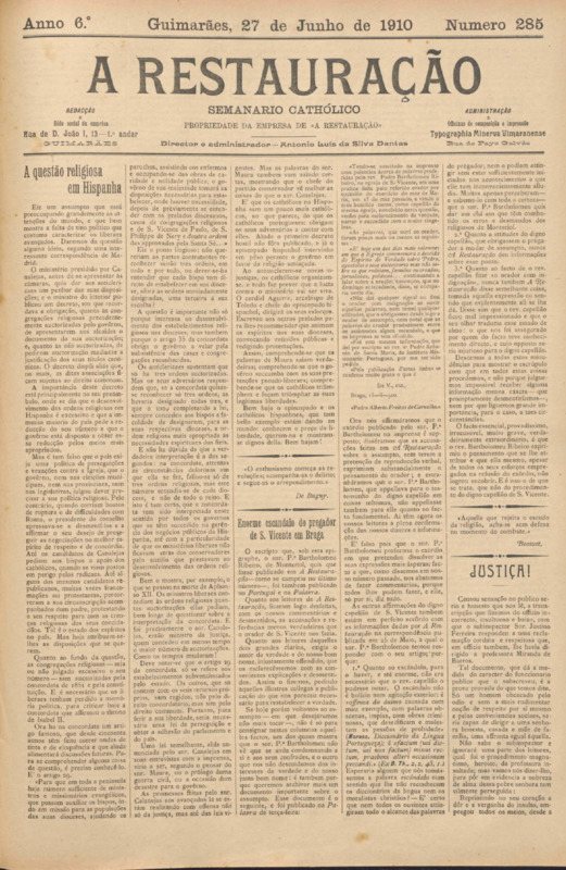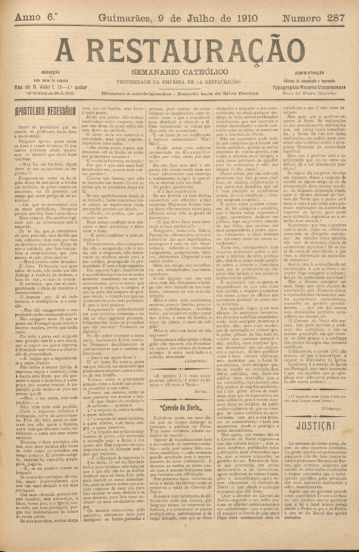 Publicação às 5.ª feiras. Saiu em substituição do Jornal de Guimarães, que findou em 01-12-1903, e acabou com o n.º 311 do 6.º ano, em 09/05/1911. Este jornal era orientado e quási totalmente redigido pelo P.e José Lopes Leite de Faria. Mais informações