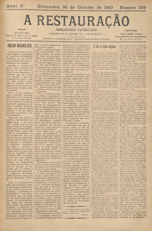 Restauração, n.º 0298, de 30/10/1910