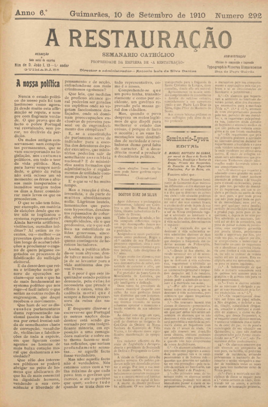 Restauração, n.º 0292, de 10/09/1910