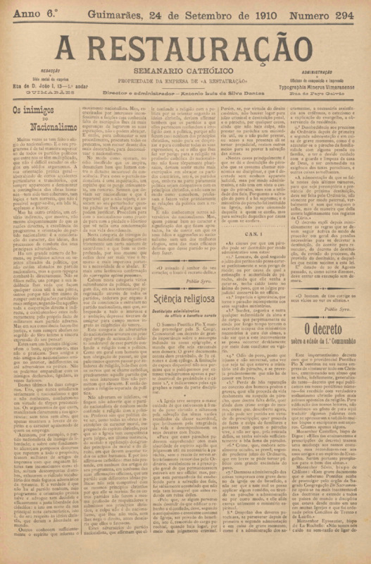 Restauração, n.º 0294, de 24/09/1910