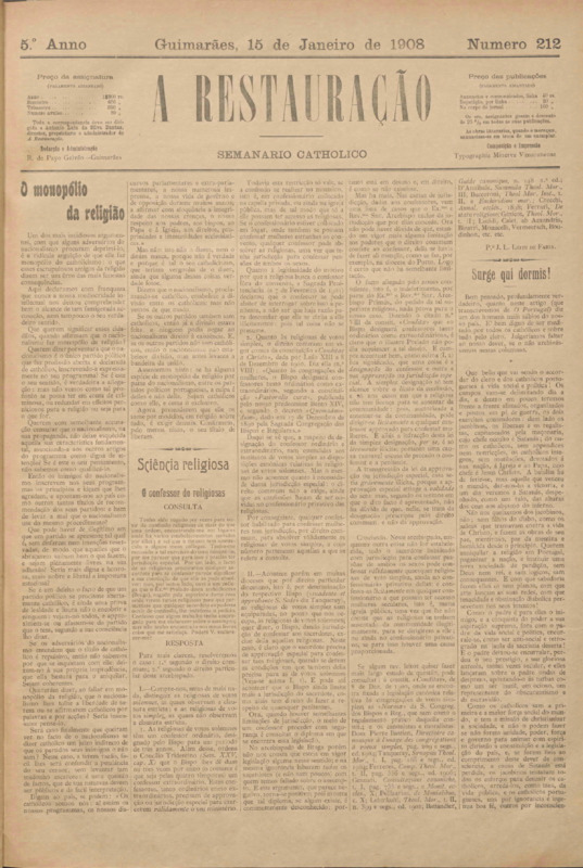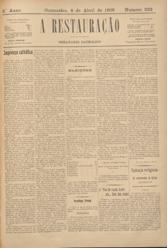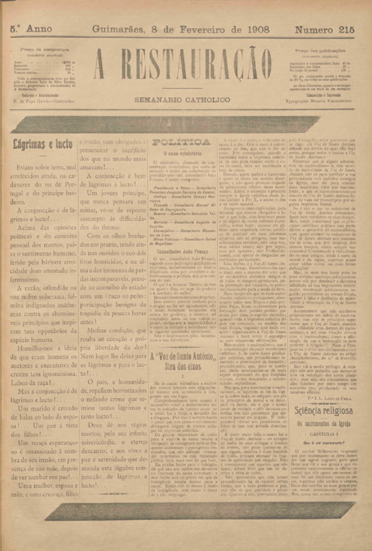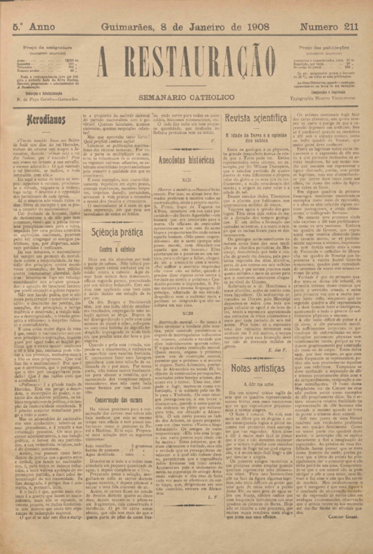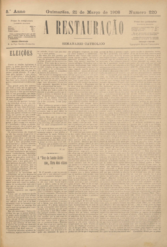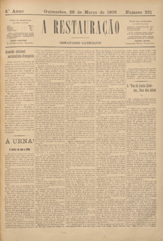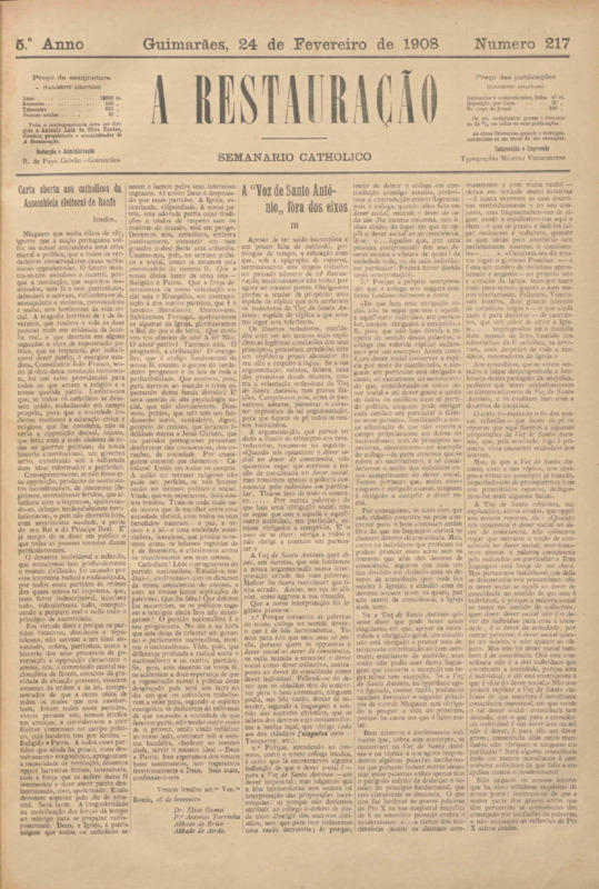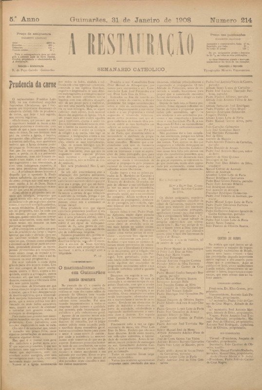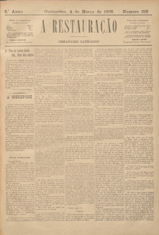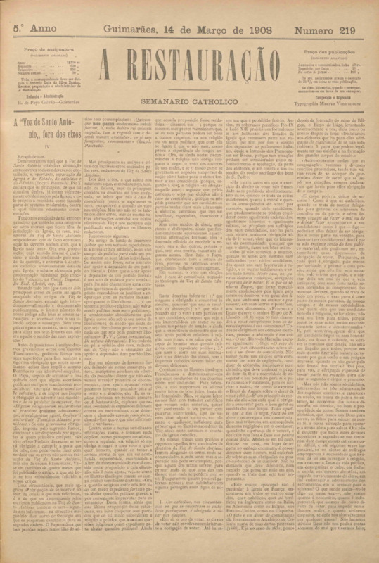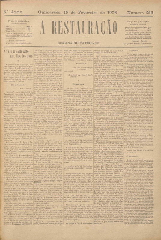 Publicação às 5.ª feiras. Saiu em substituição do Jornal de Guimarães, que findou em 01-12-1903, e acabou com o n.º 311 do 6.º ano, em 09/05/1911. Este jornal era orientado e quási totalmente redigido pelo P.e José Lopes Leite de Faria. Mais informações