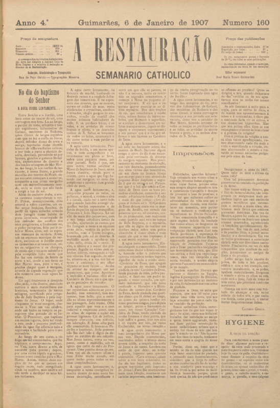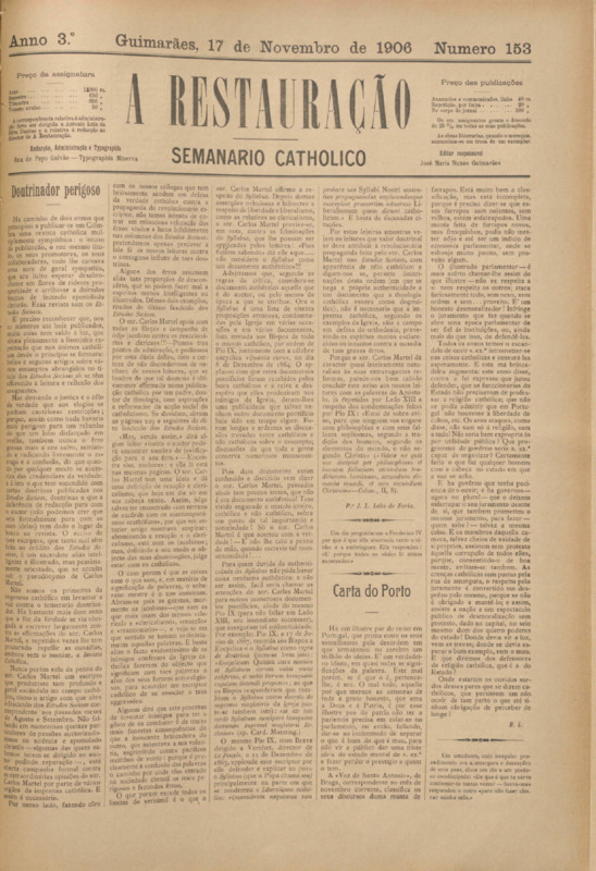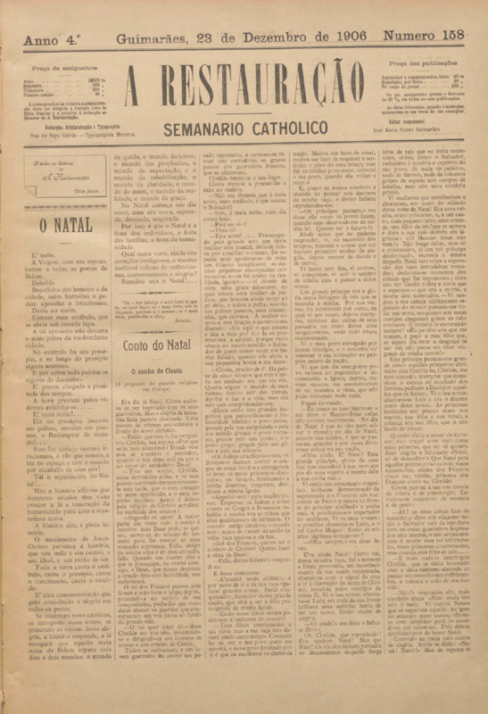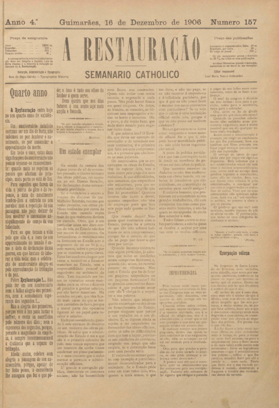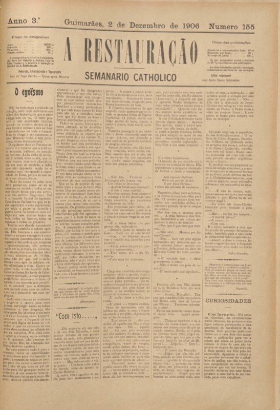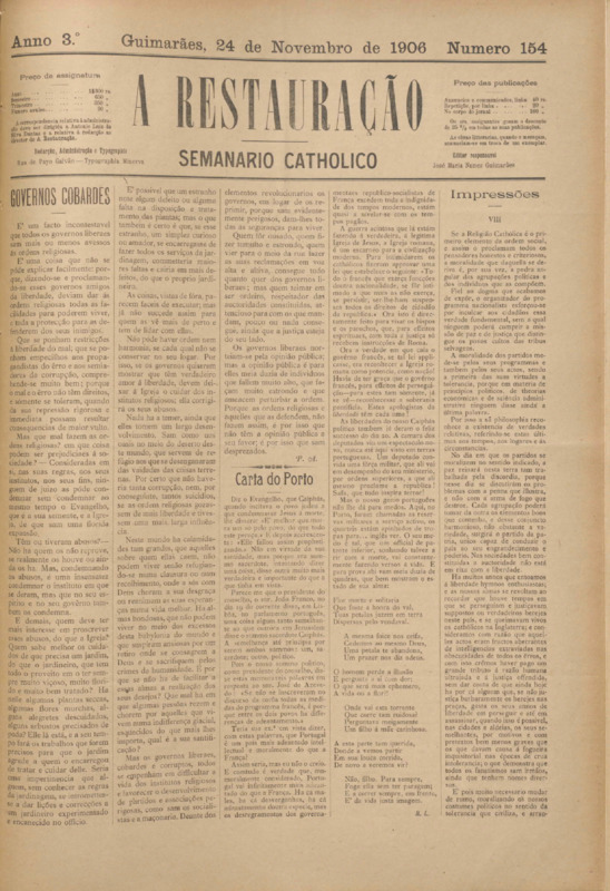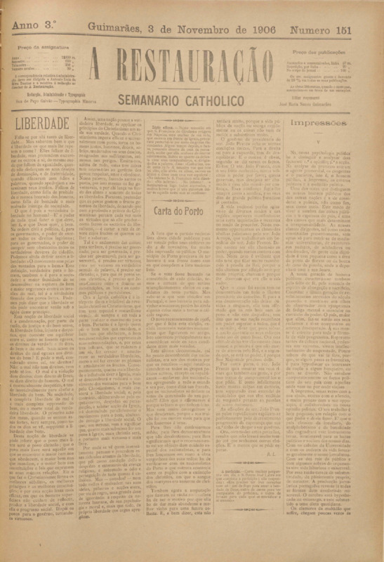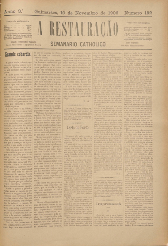 Publicação às 5.ª feiras. Saiu em substituição do Jornal de Guimarães, que findou em 01-12-1903, e acabou com o n.º 311 do 6.º ano, em 09/05/1911. Este jornal era orientado e quási totalmente redigido pelo P.e José Lopes Leite de Faria. Mais informações