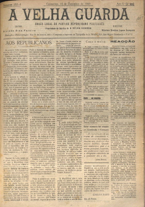 Velha Guarda (A), n.º 256, de 29/12/1929