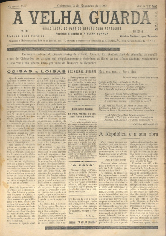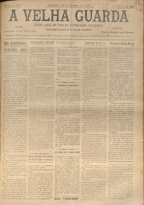 Velha Guarda (A), n.º 246, de 27/10/1929