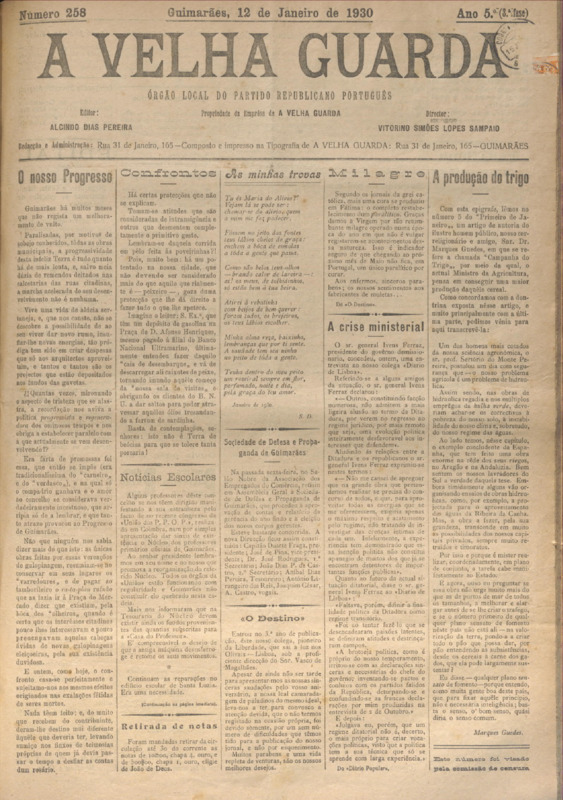 Velha Guarda (A), n.º 258, de 12/01/1930