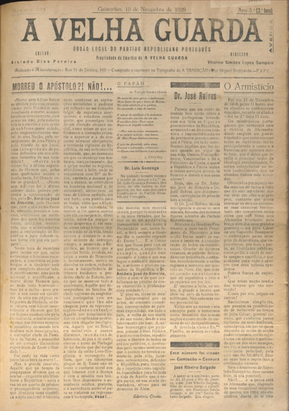 Velha Guarda (A), n.º 248, de 10/11/1929