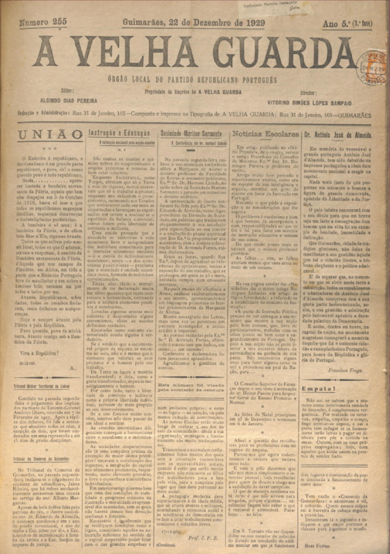 Velha Guarda (A), n.º 255, de 22/12/1929