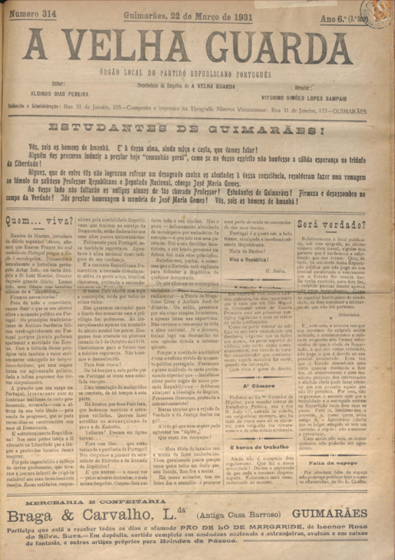 Velha Guarda (A), n.º 314, de 22/03/1931