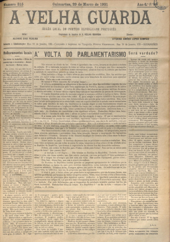 Velha Guarda (A), n.º 315, de 29/03/1931