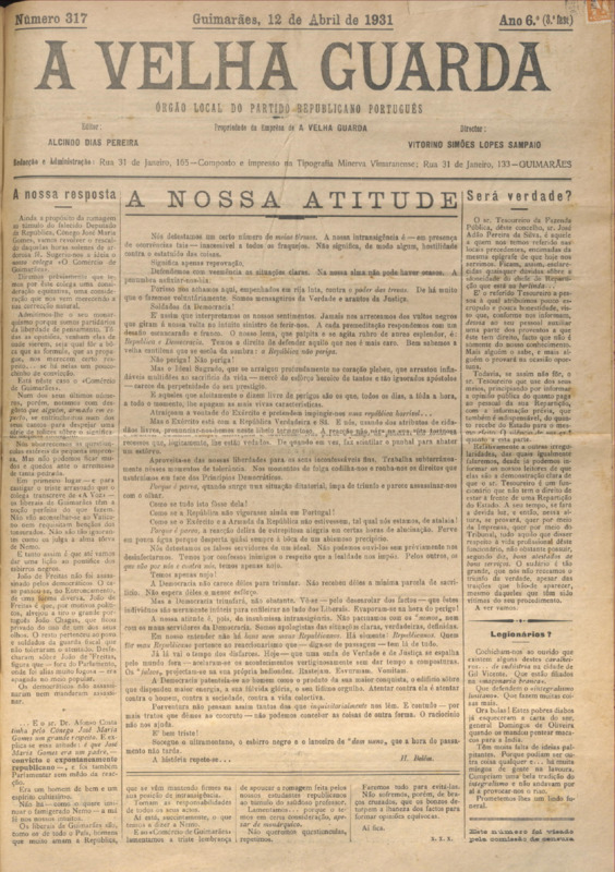 Velha Guarda (A), n.º 317, de 12/04/1931