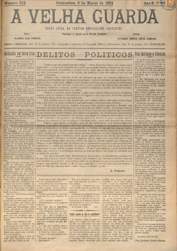Velha Guarda (A), n.º 312, de 08/03/1931