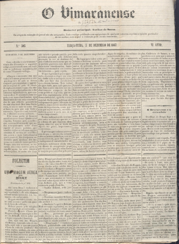 O Vimaranense, n.º 0505, de 03/12/1867