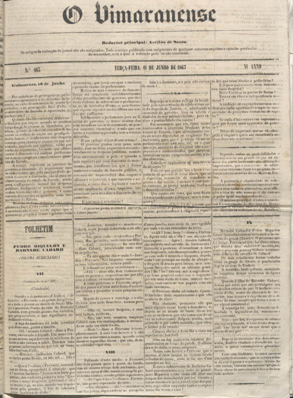 O Vimaranense, n.º 0463, de 11/06/1867