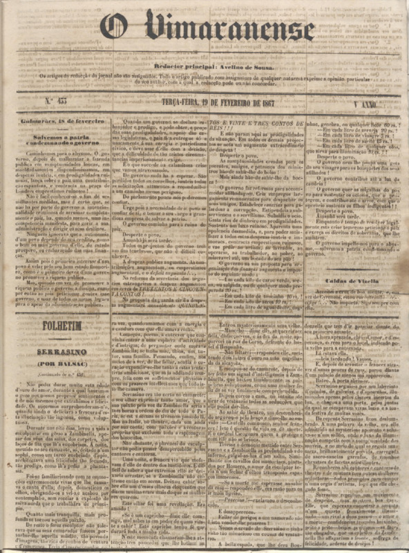 O Vimaranense, n.º 0433, de 19/02/1867