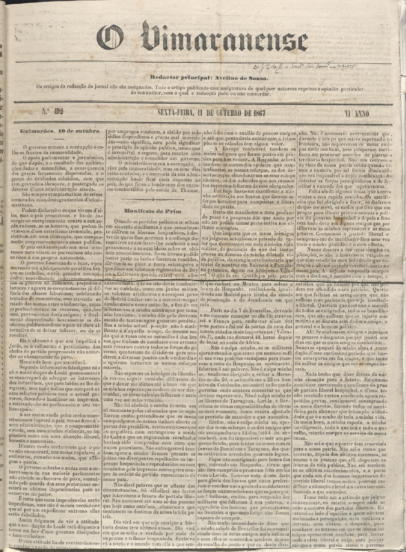 O Vimaranense, n.º 0492, de 11/10/1867