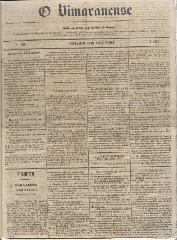 O Vimaranense, n.º 0439, de 15/03/1867