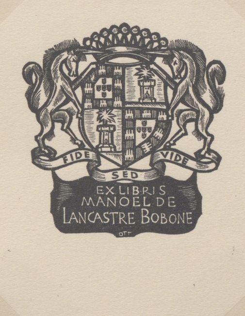 - Leitura heráldica: Escudo esquartelado. I e IV - Lancastre, II e III - Bobone. Coronel de conde. Suportes: dois unicórnios.