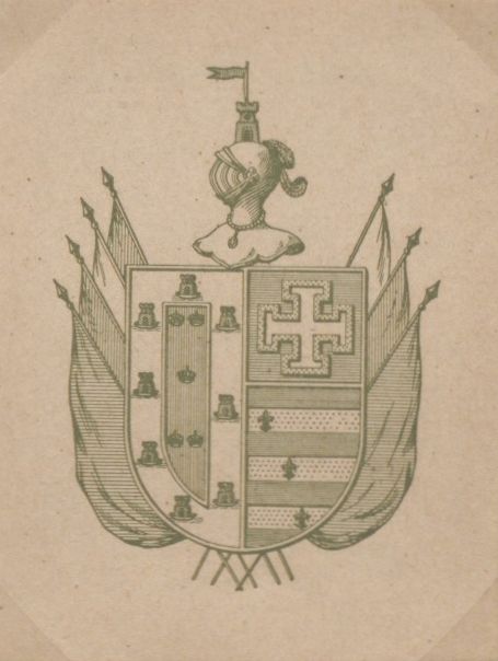 Leitura heráldica: Escudo partido: I-Pacheco (de Duarte Pacheco Pereira), II-cortado: 1.º Teixeira, 2.º Rebelo. Timbre de Pacheco. Elmo