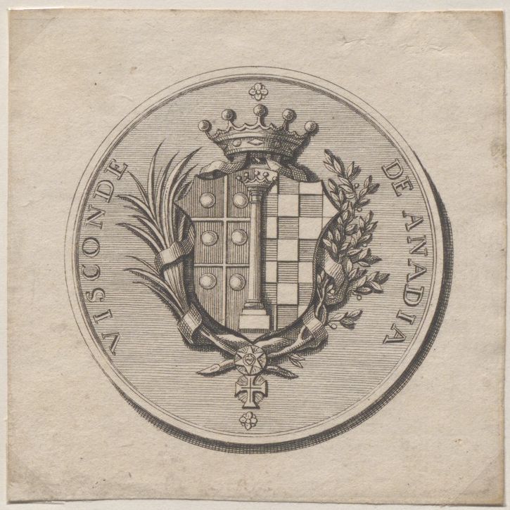 Leitura heráldica: Escudo partido: I-Melo, II-Sá, tendo sobreposta a coluna dos Colona. Coronel de visconde. Pendente de fita a insígnia da Ordem de Cristo