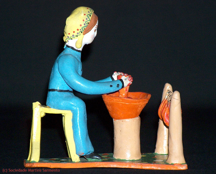 - Personagem, mulher dos salpicões, em barro policromado e envernizado, pela Olaria Alfacinha. A mulher está sentada num banco, à frente dela um alguidar pintado sobre um tronco e cinco salpicões dependurados. (Estremoz, 1962).