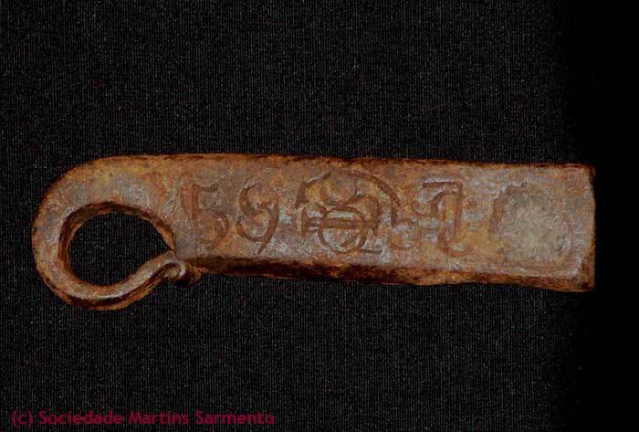 Peso de ferro (0, 225 kg), rectangular e gravado, empregue na pesagem do linho. Séc. XIX.