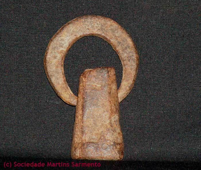 Peso de ferro (0,220 kg) com argola, empregue na pesagem do linho. Séc. XIX.