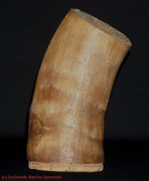 Segmento de chifre em marfim, cerrado por duas tampas de cortiça, uma de cada lado. (Angola, séc. XX).