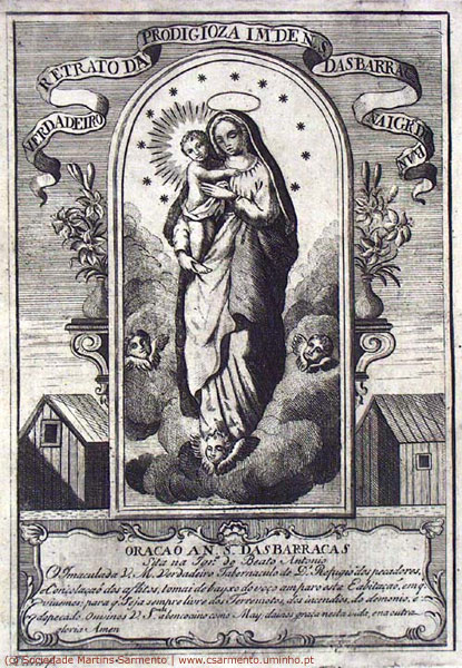 ORAÇÃO A N. S. DAS BARRACAS/ Sita na Igr.ª do Beato Antonio/ O Imaculada V. M. Verdadeiro Tabernaculo de D.s Refugio dos pecadores,/ [...] dainos graça nesta vida, e na outra/ gloria Amen.