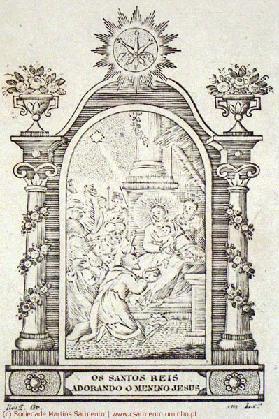 - Imagem dos Reis Magos a adorar o Menino Jesus.