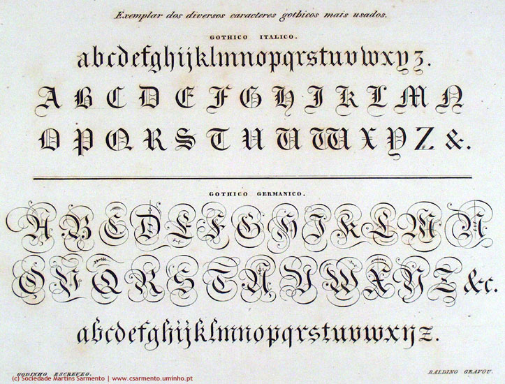 - Exemplar dos diversos caracteres gothicos mais usados./ GOTHICO ITALICO./ GOTHICO GERMANICO.