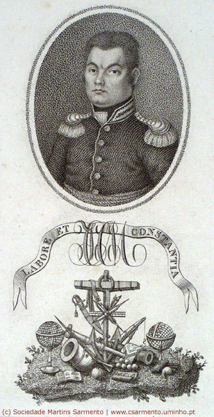 - Retrato, do busto, de João Crisóstomo de Couto e Mello, moldura oval. Na parte inferior da gravura vê-se vãrios instrumentos de navegação.