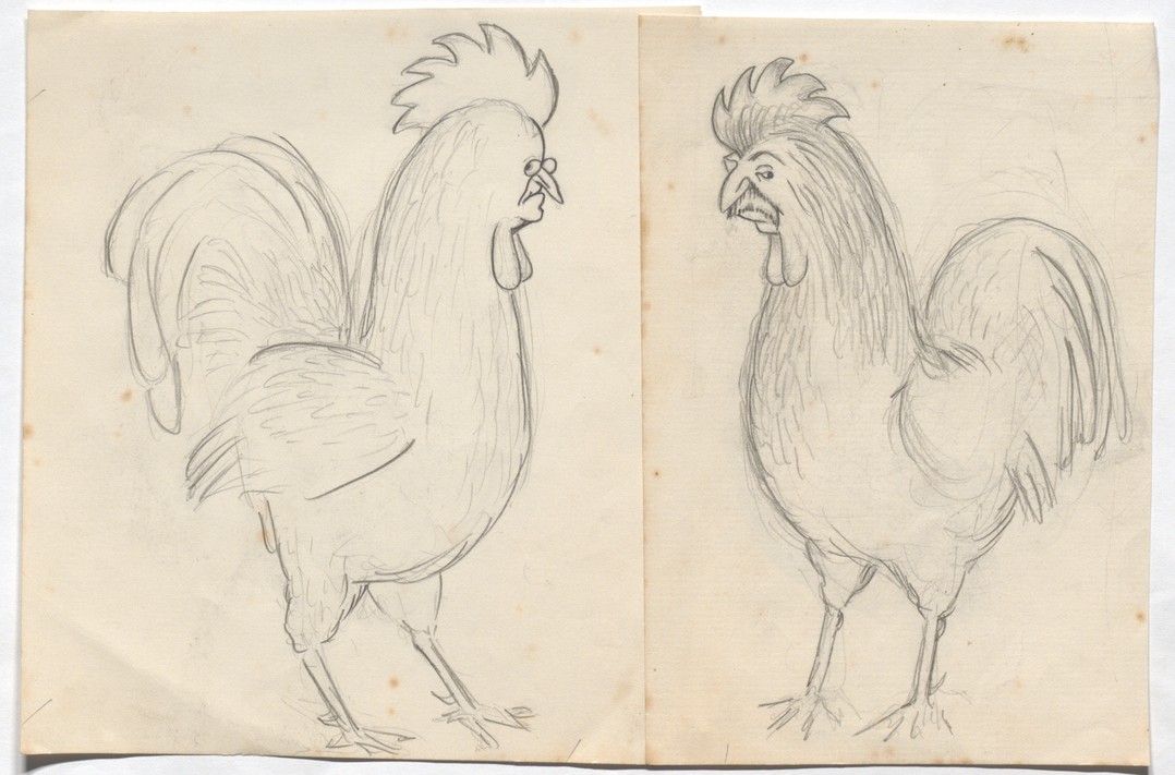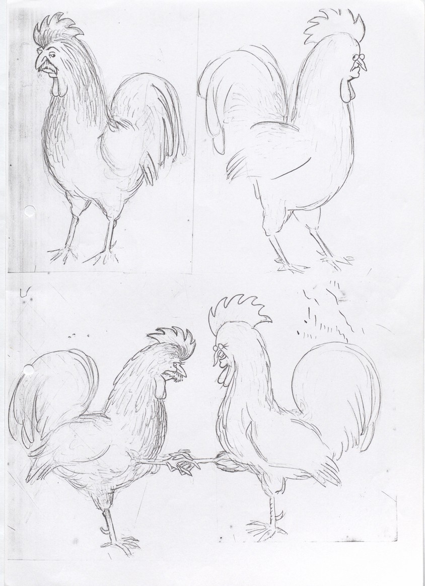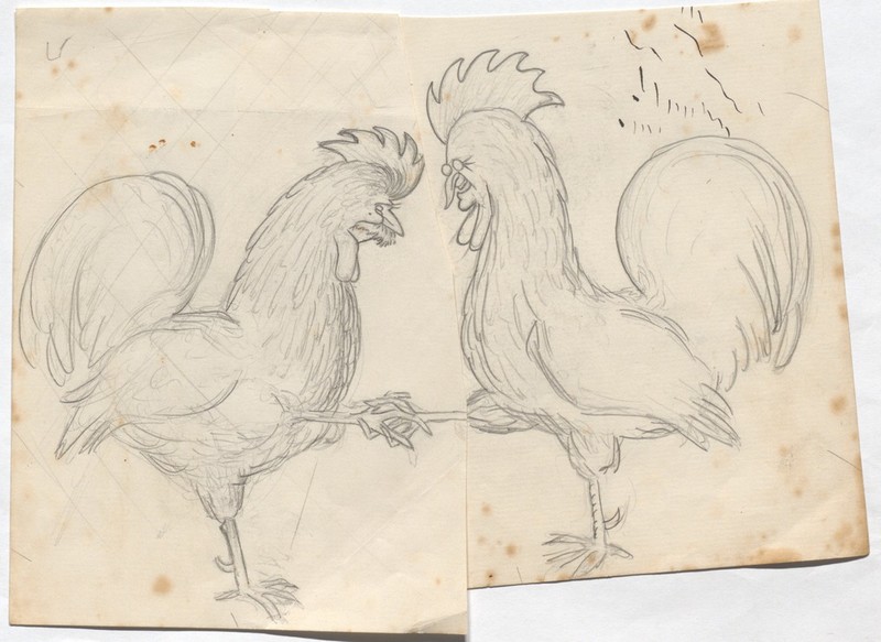 Caricatura de dois indivíduos (inclui uma fotocópia na qual o autor demonstra a sequência das imagens).